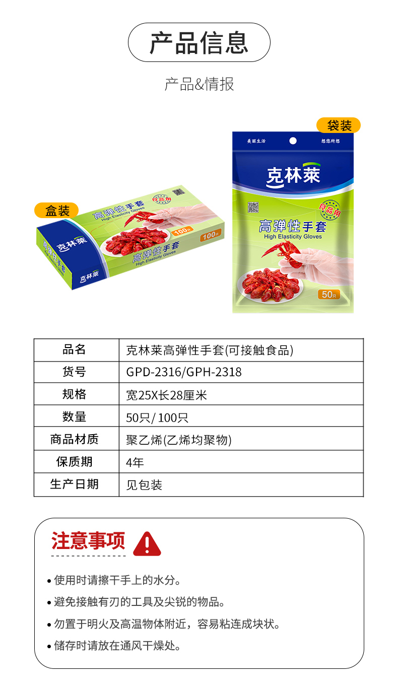 | 高弹性手套 GPD-2316 | 25cmx28cm(50只) | 盒 | 30 | 6920467723165 |